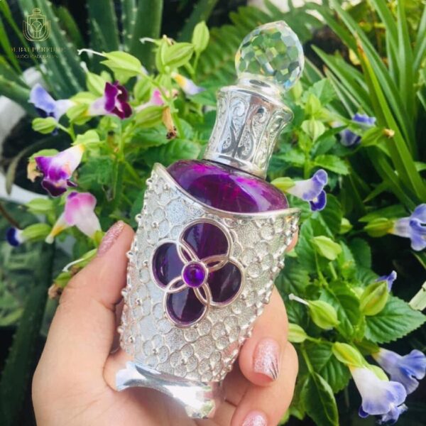 – Chai nước hoa có màu tím chủ đạo, tạo cảm giác sang trọng và quý phái. Màu tím cũng là màu sắc thường được liên kết với sự huyền bí và quyến rũ.