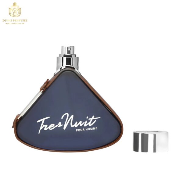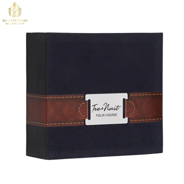 – Thiết Kế Sang Trọng: Chai nước hoa của Tres Nuit Pour Homme mang thiết kế thanh lịch và hiện đại, phản ánh sự tinh tế của sản phẩm. Màu sắc và kiểu dáng của chai thể hiện sự sang trọng và đẳng cấp, phù hợp với hình ảnh của một người đàn ông hiện đại.