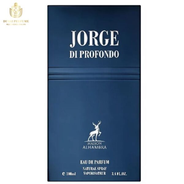 – Logo: Trên thân chai có in logo của thương hiệu Maison Alhambra và tên nước hoa Jorge di Profondo. Logo hình con hươu mang đến cảm giác mạnh mẽ và tự nhiên.