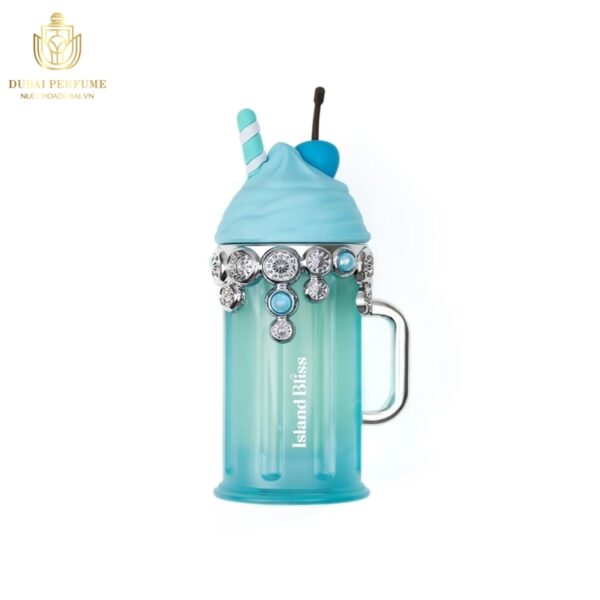 – Chai nước hoa: Có hình dáng độc đáo, mô phỏng một ly cocktail mát lạnh với phần trên là viên kem đầy màu sắc và một chiếc ô nhỏ xinh. Thiết kế này mang đến cảm giác tươi mát, tràn đầy năng lượng và rất phù hợp với tên gọi “Island Bliss” (Đảo Hạnh Phúc).
