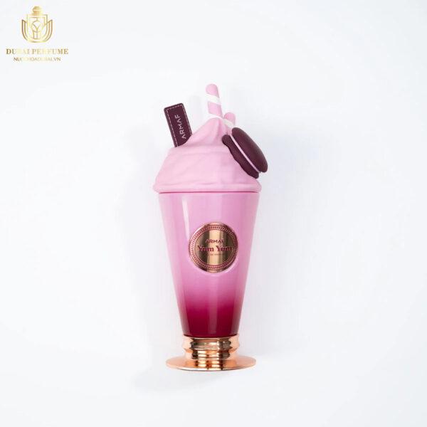 Thiết kế của nước hoa Dubai nữ Armaf Delights Yum Yum rất độc đáo và bắt mắt, lấy cảm hứng từ hình ảnh của một ly sữa lắc (milkshake) ngọt ngào. Armaf Delights Yum Yum rất trẻ trung, nữ tính và ngọt ngào. Nó thể hiện rõ ý tưởng về một loại nước hoa mang hương thơm tươi mát, ngọt ngào như một món tráng miệng hấp dẫn. Thiết kế này chắc chắn sẽ thu hút những cô gái yêu thích sự đáng yêu, năng động và muốn thể hiện cá tính riêng.