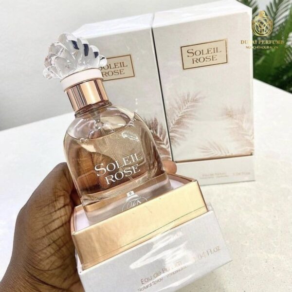 – Nồng độ EDP (Eau de Parfum): Soleil Rose có nồng độ EDP, có nghĩa là nó chứa một lượng tinh dầu thơm cao (15-20%). Điều này giúp hương thơm của nước hoa lưu lại trên da lâu hơn, thường từ 6-8 tiếng, thậm chí có thể kéo dài cả ngày nếu sử dụng đúng cách.