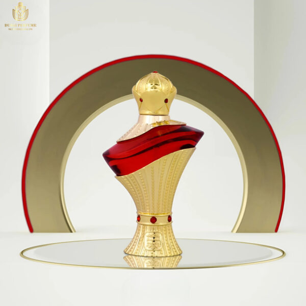 Tinh Dầu Nước Hoa Dubai Nữ Afaf không chỉ mang đến hương thơm quyến rũ mà còn chinh phục người dùng ngay từ cái nhìn đầu tiên với thiết kế tinh tế và độc đáo. Chai nước hoa được chế tác từ chất liệu kim loại cao cấp, tạo nên sự sang trọng và mạnh mẽ, kết hợp với màu vàng ánh kim bắt mắt. Điểm nhấn nổi bật chính là phần nắp hình vương miện, tượng trưng cho sự quý phái và quyền lực, thu hút mọi ánh nhìn.
