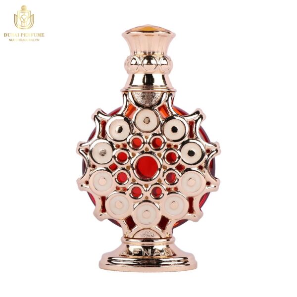 Hình ảnh tinh dầu nước hoa Dubai Noor Al Shams đã thực sự chinh phục mọi ánh nhìn. Chai nước hoa được thiết kế vô cùng tinh xảo, với những đường nét hoa văn tinh tế, gợi lên vẻ đẹp hoàng gia của vùng đất Ả Rập. Màu sắc chủ đạo là vàng và đỏ, tạo nên sự sang trọng và quý phái. Nắp chai được chạm khắc tỉ mỉ, như một chiếc vương miện nhỏ, càng làm tăng thêm vẻ đẹp lộng lẫy của sản phẩm.