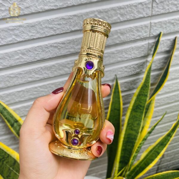 Chai nước hoa Dubai Rabwa là một tác phẩm nghệ thuật thu nhỏ, toát lên vẻ đẹp hoàng gia của vùng đất Trung Đông. Thiết kế chai với đường nét hoa văn tinh xảo, kết hợp hài hòa giữa màu vàng kim quý phái và màu tím huyền bí, tạo nên một tổng thể vừa cổ điển vừa hiện đại. Nắp chai được chạm khắc tỉ mỉ, điểm xuyết bằng những viên đá quý lấp lánh, càng tôn lên sự sang trọng và đẳng cấp của sản phẩm. Chai nước hoa Rabwa không chỉ là một món đồ dùng, mà còn là một phụ kiện thời trang độc đáo, thể hiện gu thẩm mỹ tinh tế của người sở hữu.