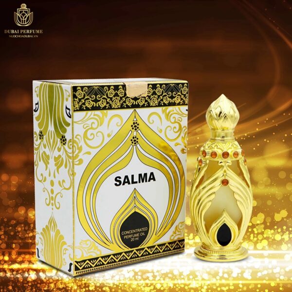 – Tinh dầu nước hoa Dubai Salma nổi bật với hương thơm quyến rũ và thiết kế sang trọng. Sản phẩm mang đến sự kết hợp hoàn hảo giữa các tầng hương tươi mát, nồng nàn và ấm áp, từ cam bergamot, hoa nhài đến gỗ đàn hương.