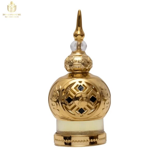– Thiết kế sang trọng: Chai nước hoa lấy cảm hứng từ kiến trúc hoàng gia Dubai, với vương miện vàng và hoa văn tinh tế.